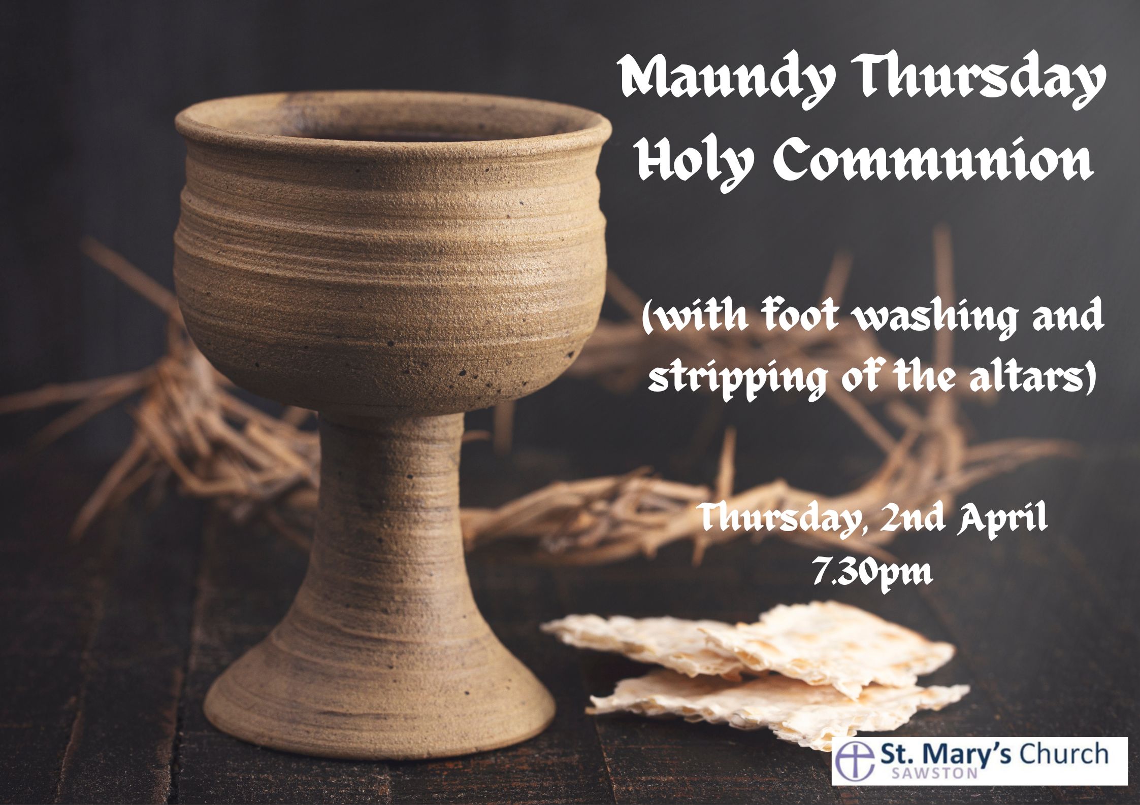 Home > Events > Maundy Thursday Holy Communion Maundy Thursday Holy Communion Starts: April 02 @ 7:30pm with optional foot washing.
