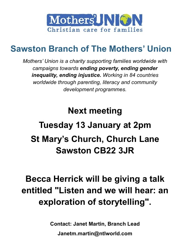 Home > Events > Mothers’ Union Talk Mothers’ Union Talk Starts: January 13 @ 2:00pm This talk is open to anyone – you are welcome here.